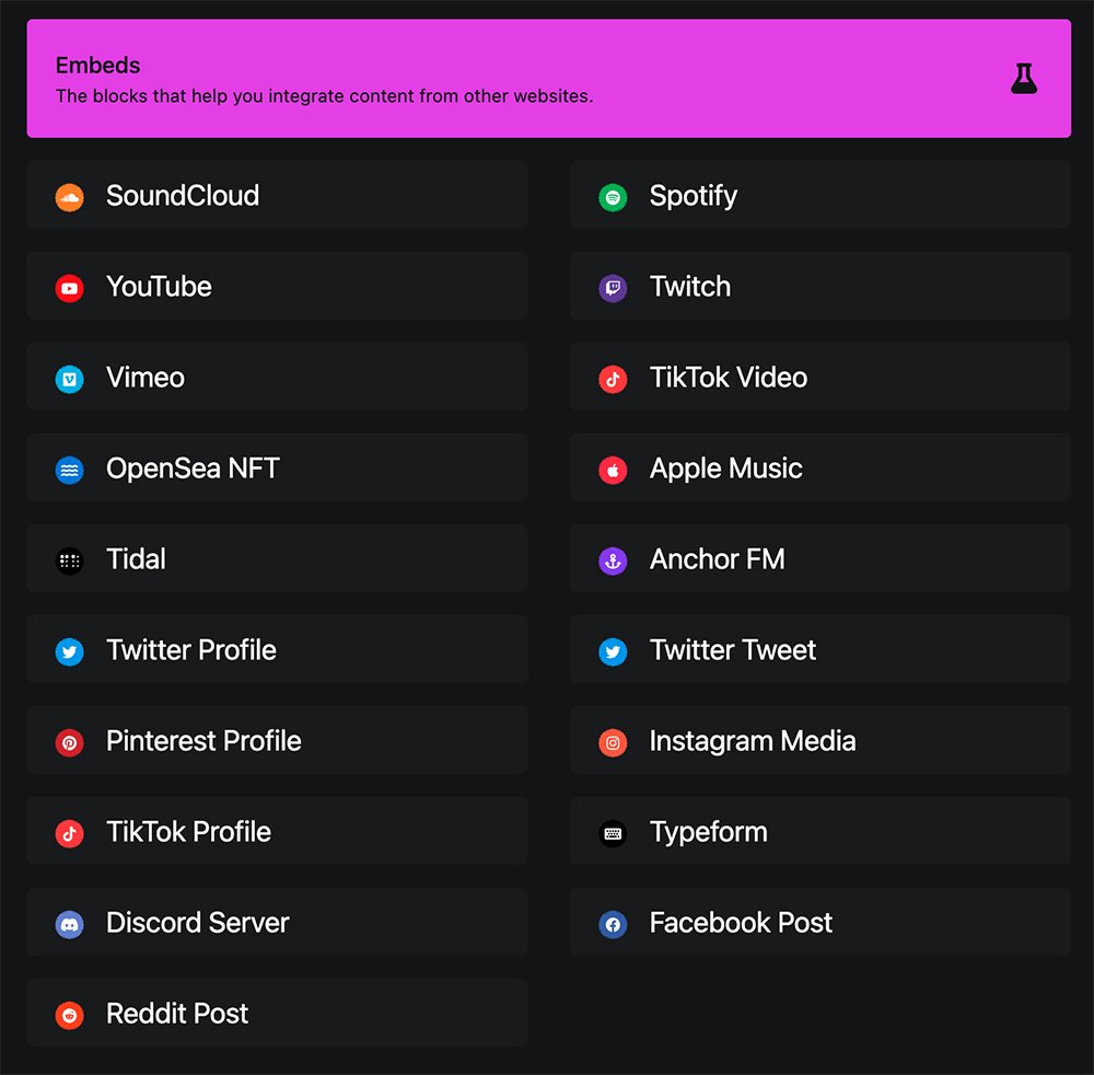 The blocks that help you integrate content from other websites.